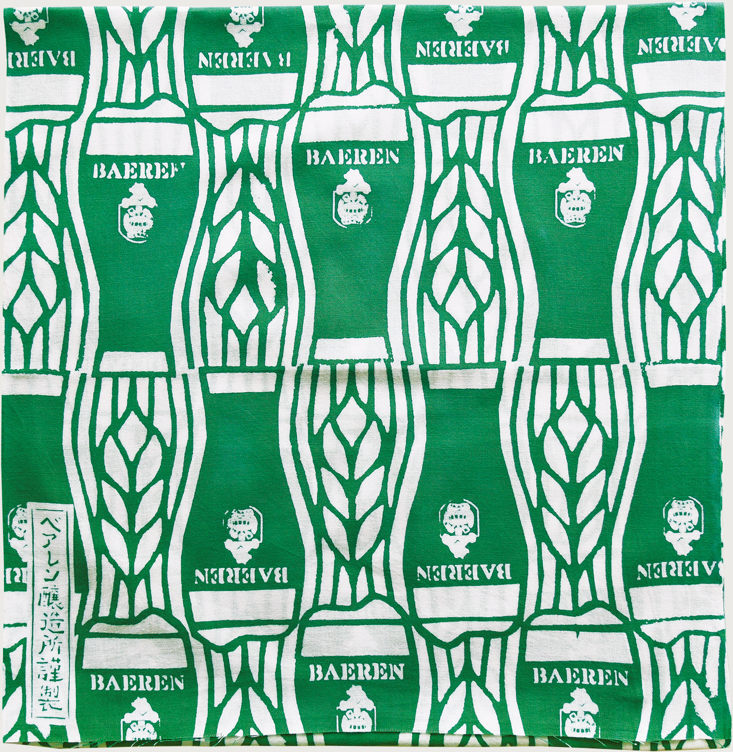 岩手県盛岡市にあるベアレン醸造所が発行するフリーペーパー「社長のビヤ草子」。その表紙と、同パターンを使用した風呂敷・手ぬぐいを制作。「ビヤ草子」という名称からイメージできるレトロで和風な印象を、ビアグラスとビアグラスの形に沿った麦のテキスタイルを用いて表現しました。