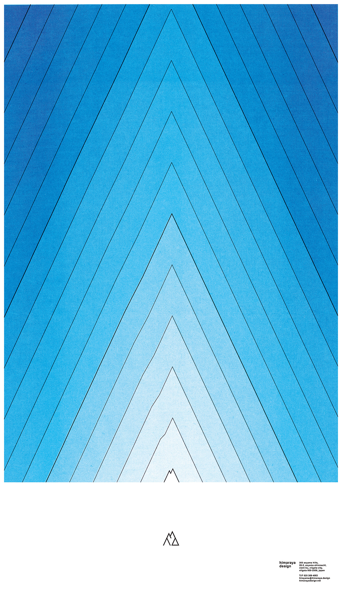 ロゴマークのアウトラインを基にしながら、冬山を表現しました。色と形がグラデーションになっており、冬山から空をイメージしています。黒ラインが、等高線や地図のようにも見えるようにしました。