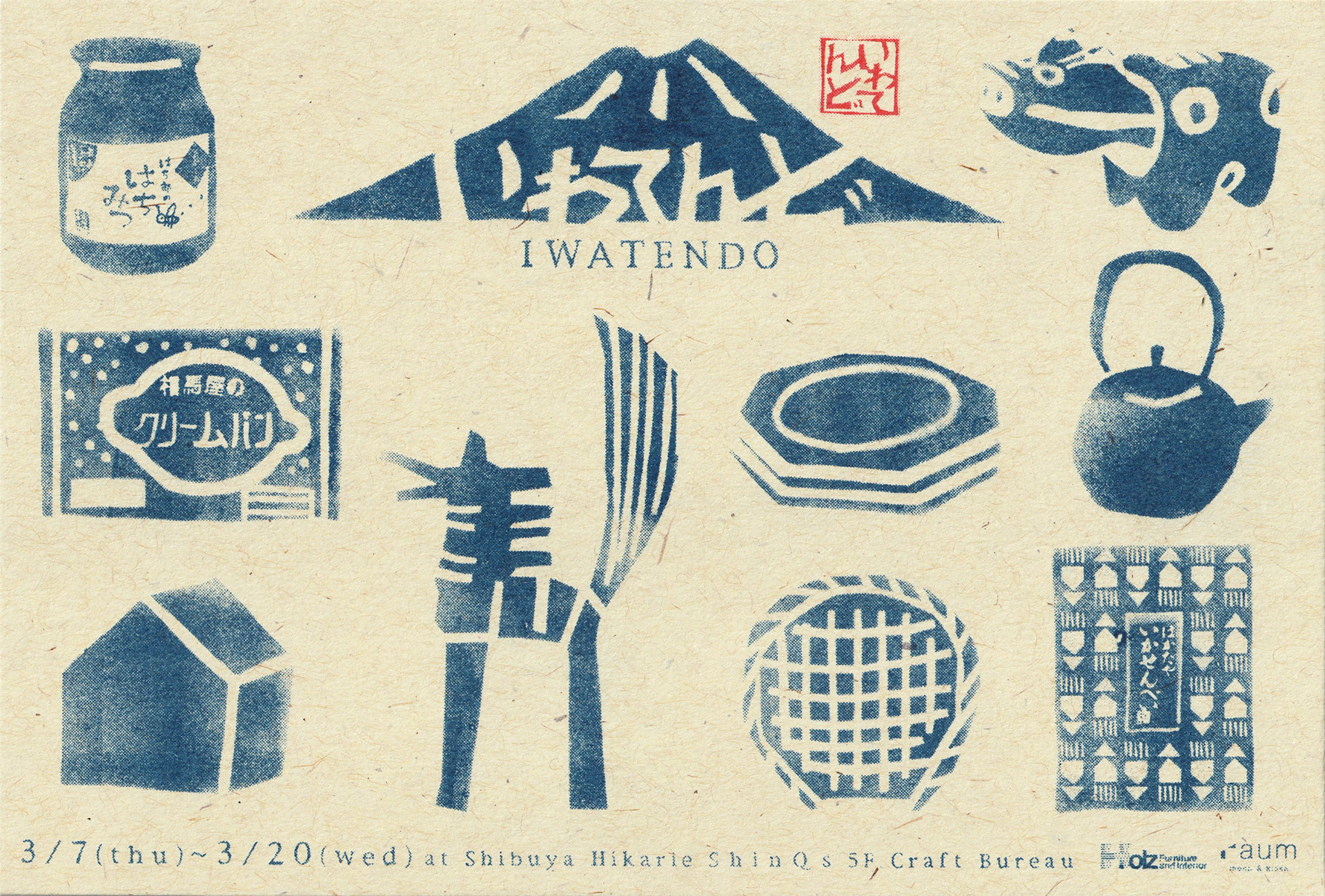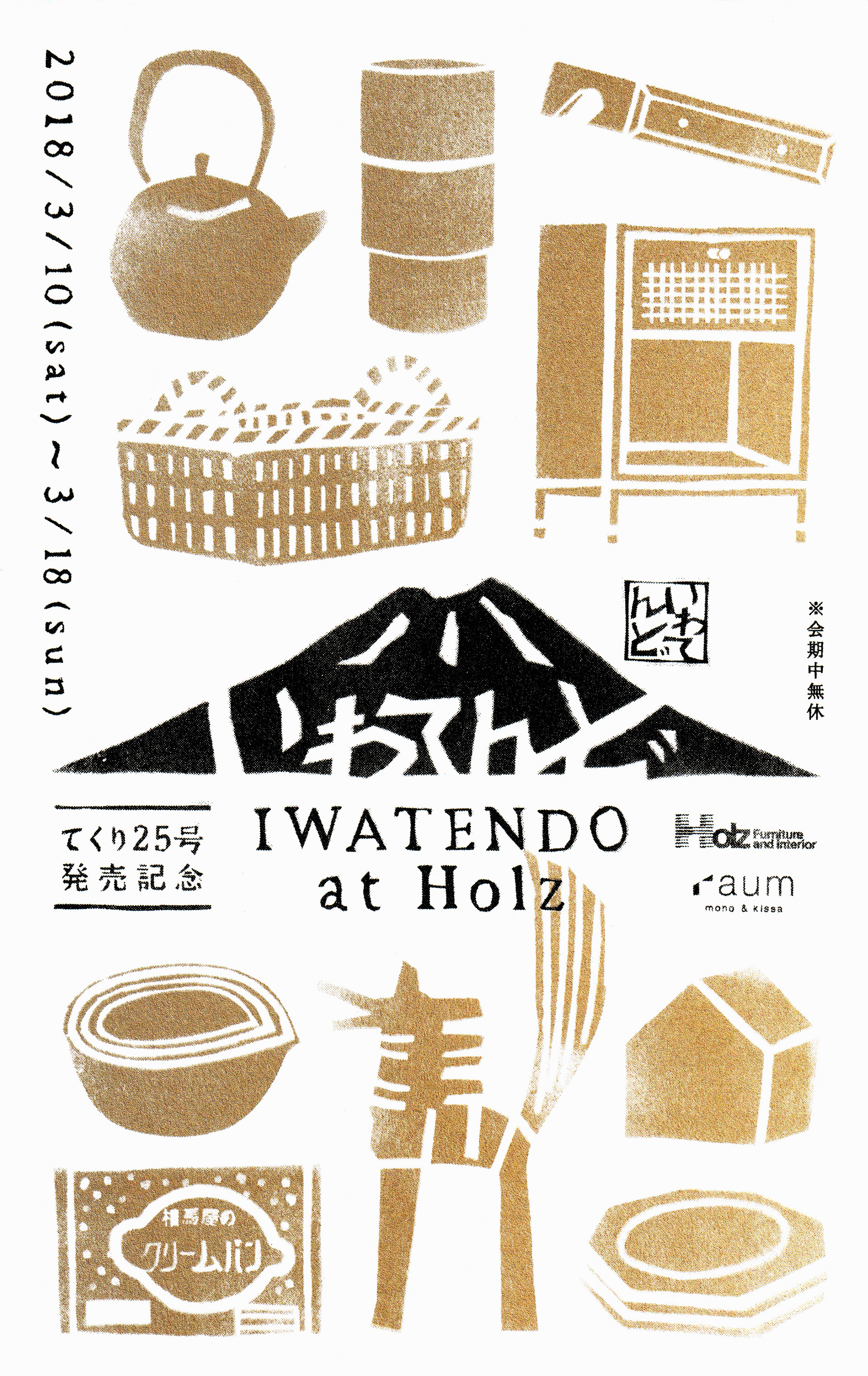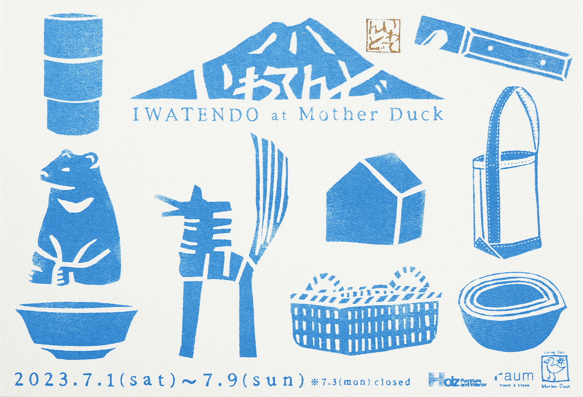 岩手県盛岡市に店を構えるHolz Furniture and interiorとraumによる出張ショップ「いわてんど」のDM。約10年ほど、ベースのデザインは変えずに、色やアイテムを変えて制作しています。あえてデザインを定番化させることで、イベントイメージを浸透させるねらいがあります。